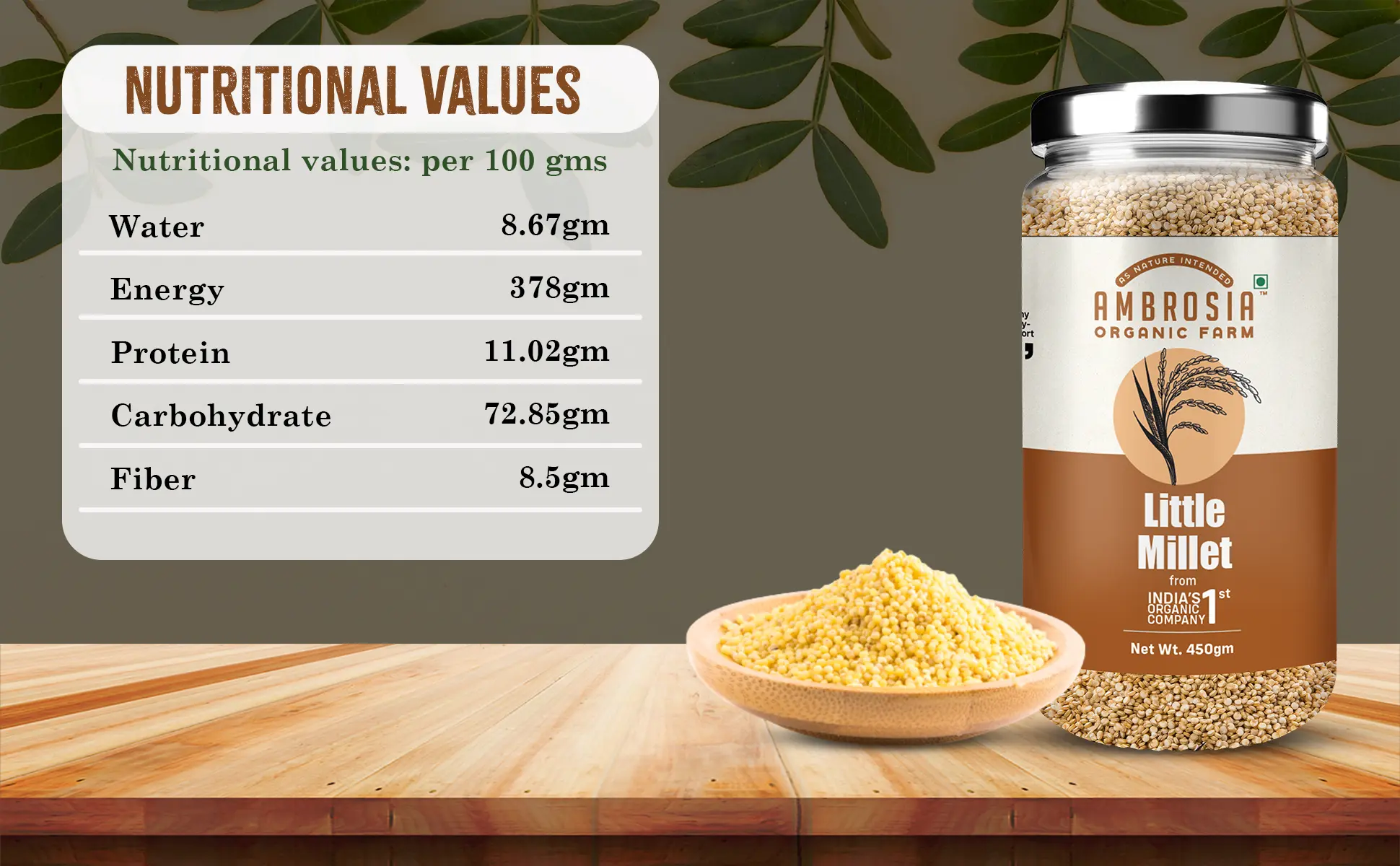 Organic foxtail millet is a versatile grain that packs a powerful nutritional punch. It is a rich source of various essential nutrients that contribute to overall well-being. Here’s a breakdown of its nutritional profile: